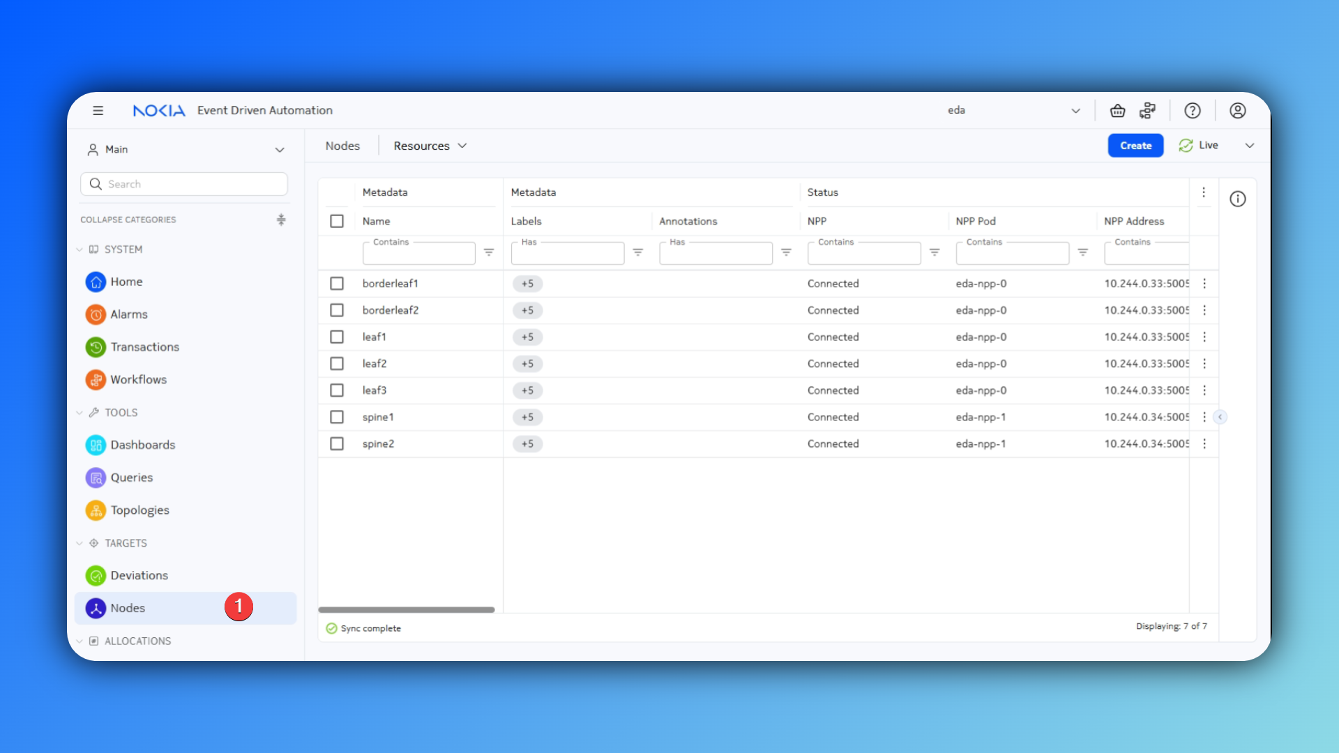 You will see labeled resources a lot in EDA, but probably the first time you get to see and interact with labels is when you look at the list of nodes managed by EDA.